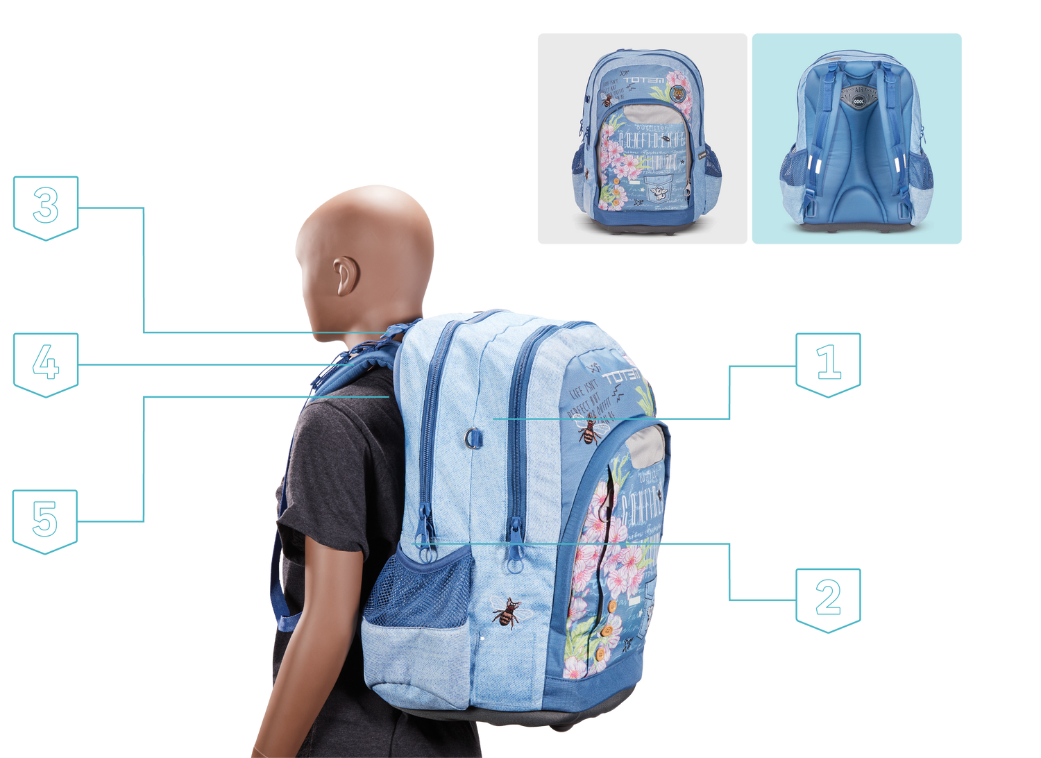 For your child to maintain good posture and to reduce strain on their shoulders and back please encourage them to use both straps when wearing their Totem schoolbag. This will be help distribute the weight more evenly and allow for full orthopedic benefits.