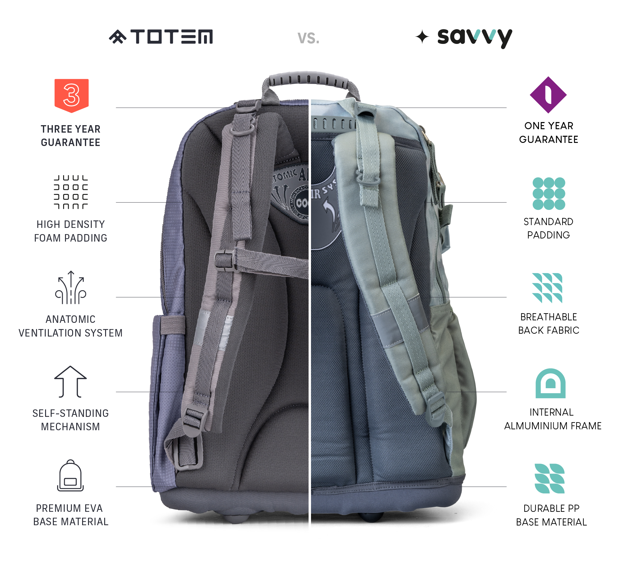 Totem, then, offers kids a real health advantage. Our bags are made to be a support – preventing back problems, protecting posture, and reducing the load by up to 20%